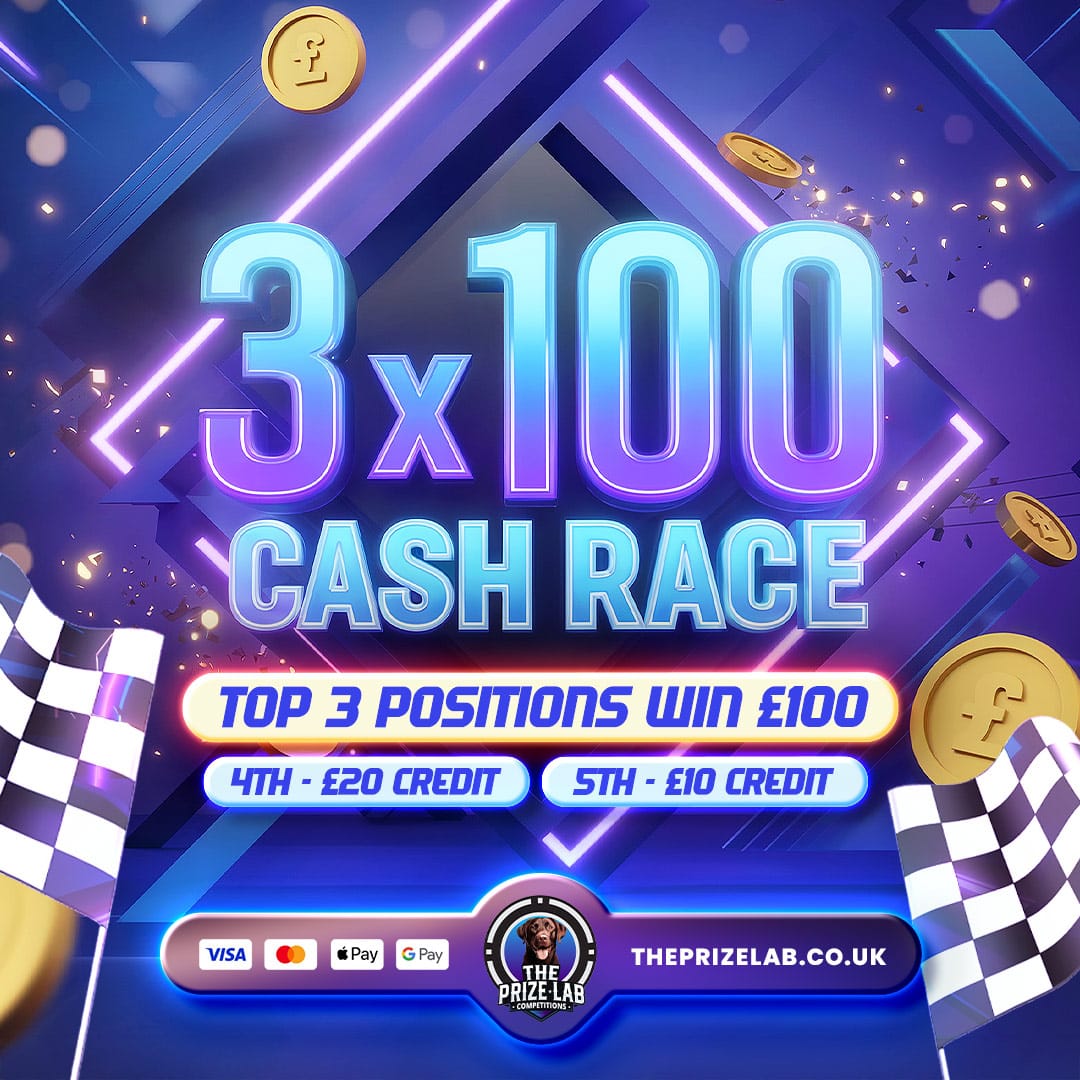 THIS WEEK’S CASH RACE WILL HAVE THREE WINNERS OF £100!