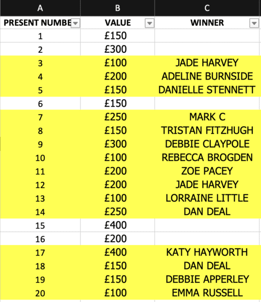 EACH MYSTERY BOX HAS A SET VALUE AGAINST THE NUMBER THAT WE SET AT THE START OF THE COMPETITION.