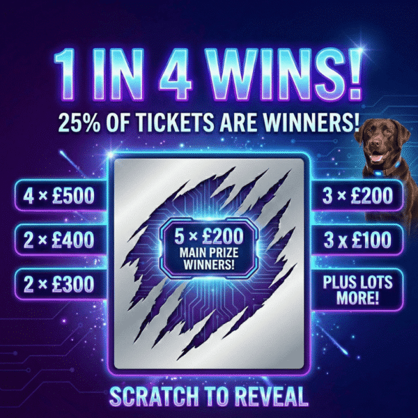 CASH PRIZES RANGE FROM £10 – £200 PLUS you have a chance to win the end prize of £250 with every ticket!