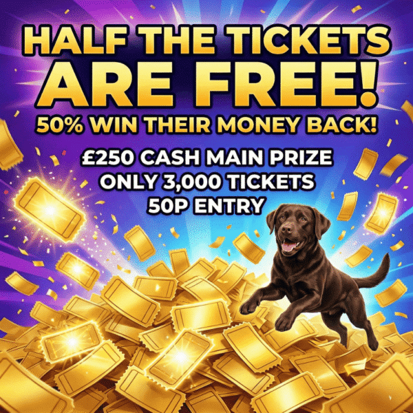 The live draw will take place on our Facebook page using Google’s random number generator to select the winning ticket number from all Entrants.