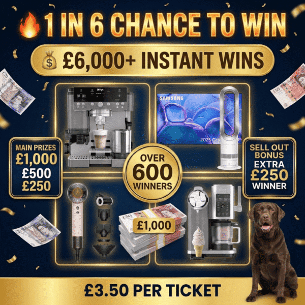 The live draw will take place on our Facebook page using Google’s random number generator to select the winning ticket number from all Entrants.