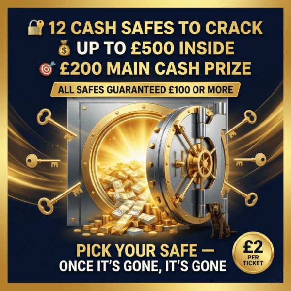 The live draw will take place on our Facebook page using Google’s random number generator to select the winning ticket number from all Entrants.
